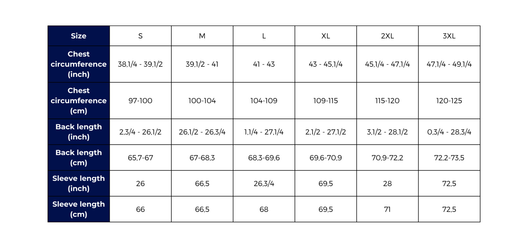 Size guide Knitwear & Outerwear